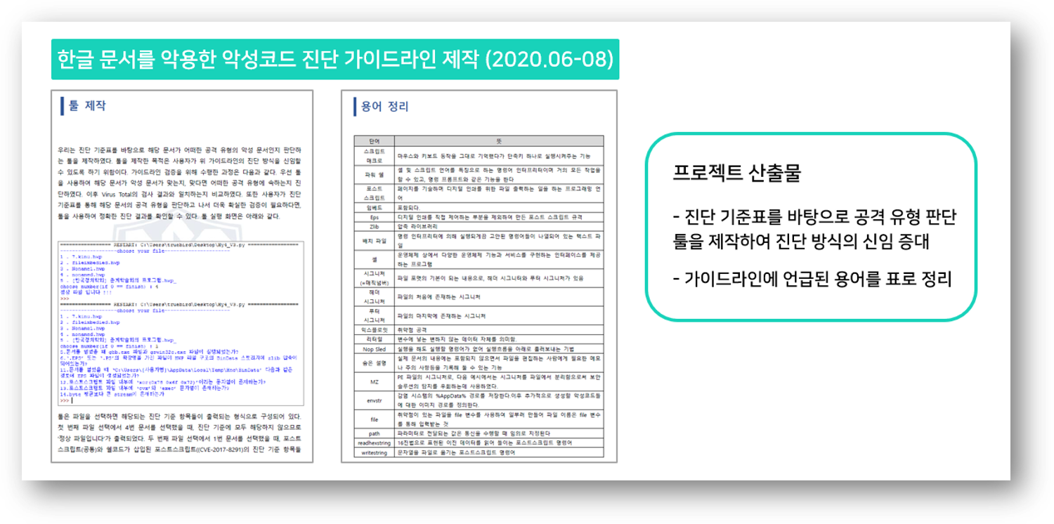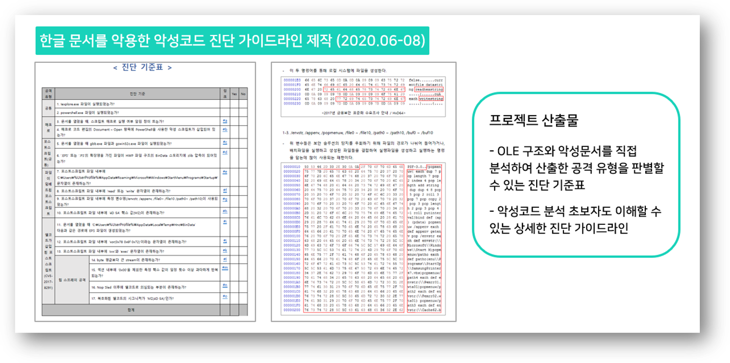 - 한글문서를 악용한 악성코드 진단 가이드라인 제작